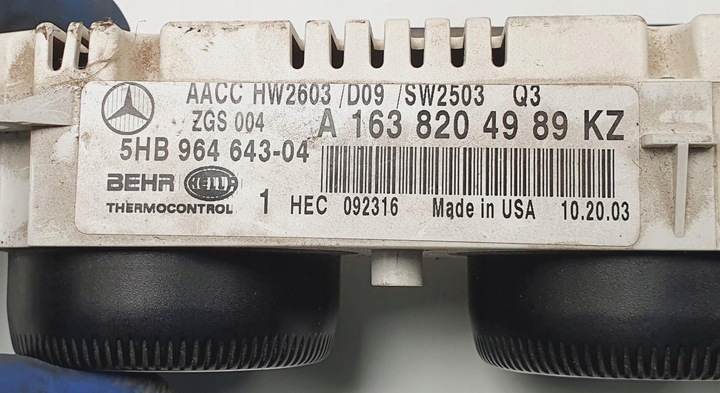 Панель управление воздуховод mercedes ml w163