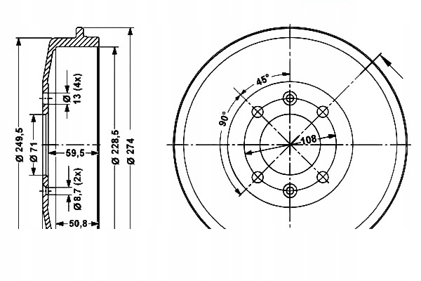 - Średnica bębna hamulcowego: 229.0