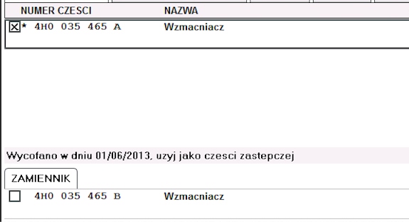 - Producent części : Audi OE