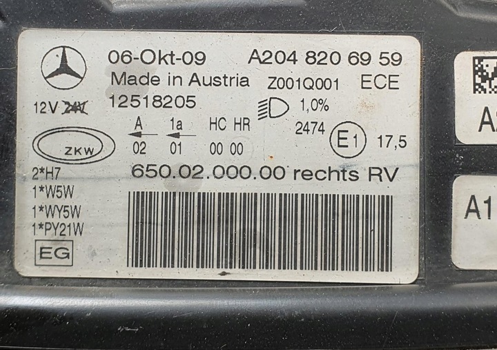 Лампа правая передняя перед mercedes glk x204 евро