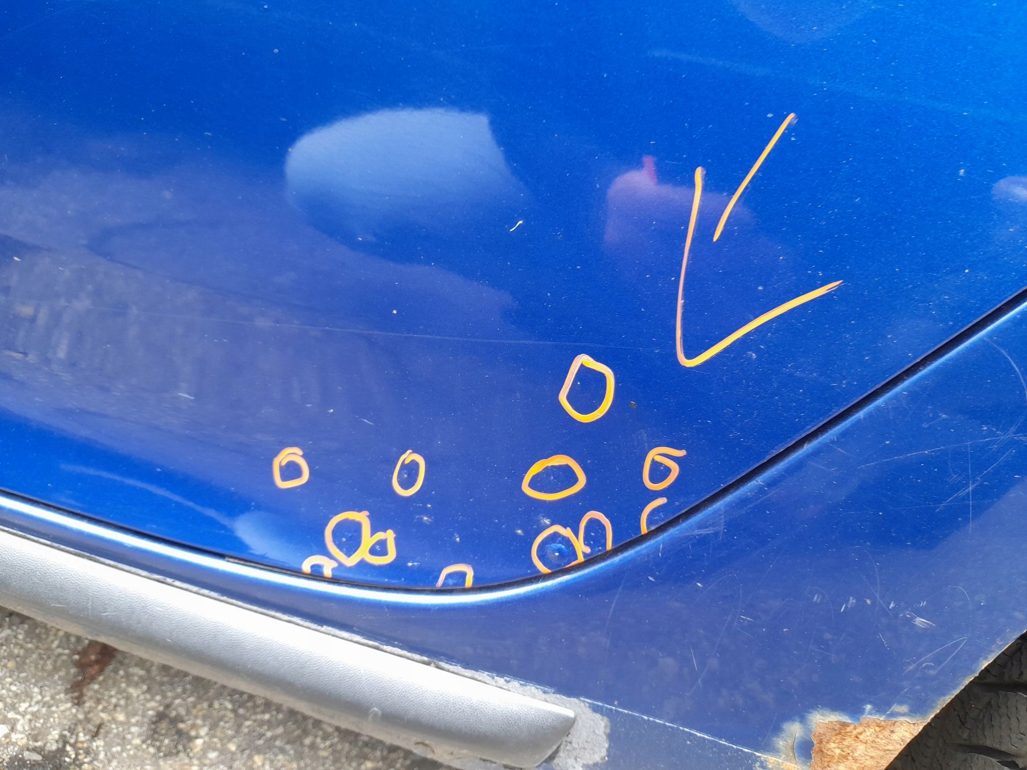 TE ZE ZDJĘĆ- JAK NA ZDJĘCIACH- KOD LAKIERU LC5J -(rozkodowany z vinu) ROK 2005 - EUROPA-wersja Hb- drzwi kpl- u dołu mini i malutkie jakieś pęcherzyki -zaznaczone markerem -jak na zdjęciach