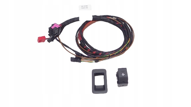 NOWY zestaw przewodów dodatkowych - sieci elektrycznej / pokładowej samochodu AUDI A7 4K8 zasilania haka holowniczego obrotowego / zwalnianego elektrycznie oraz NOWY przycisk zwalniający wraz z NOWĄ ramką.