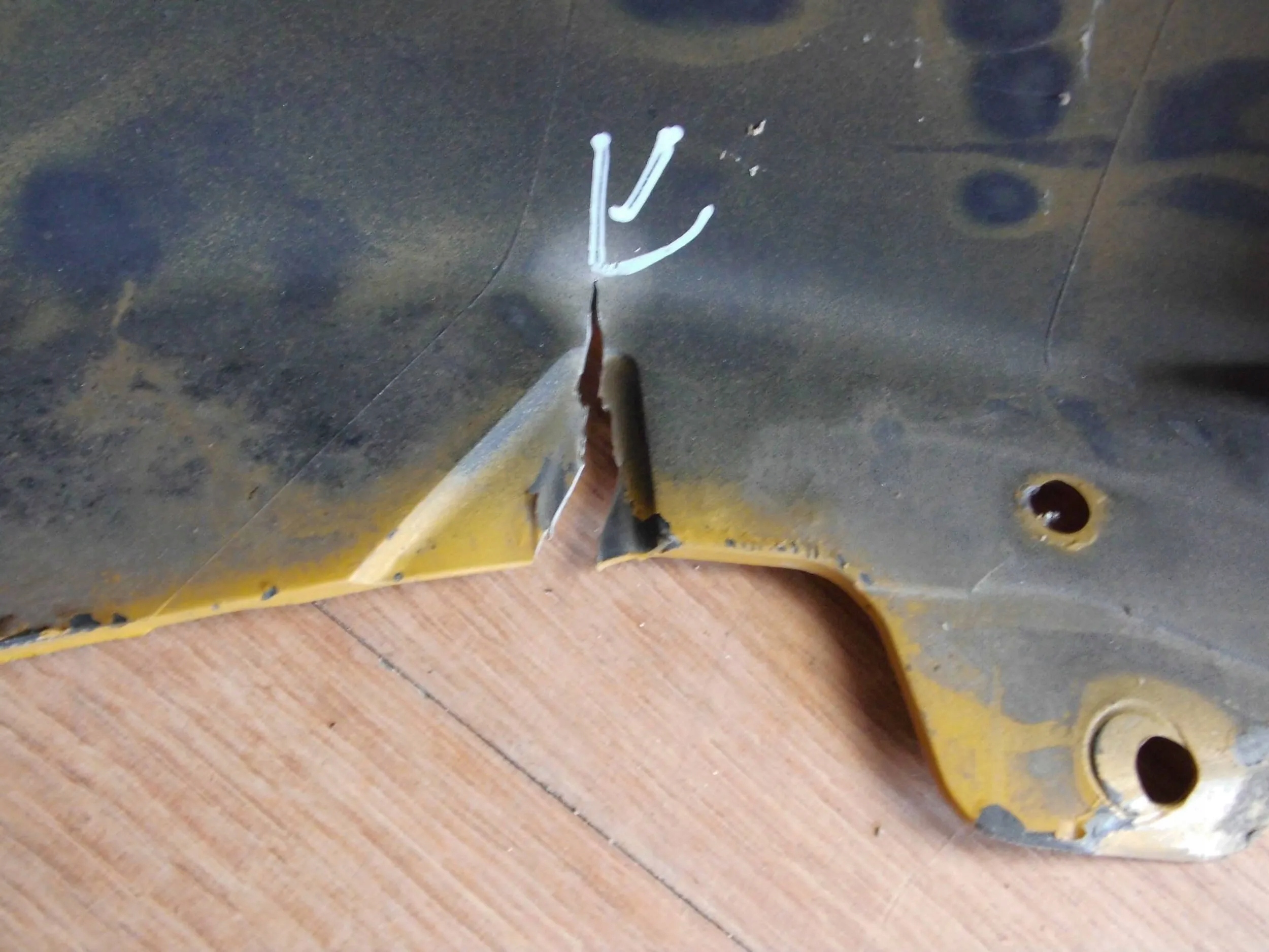 Zderzak jest w stanie dobrym, lekko pęknięty, nie był nigdy naprawiany , wymaga ponownego lakierowania.