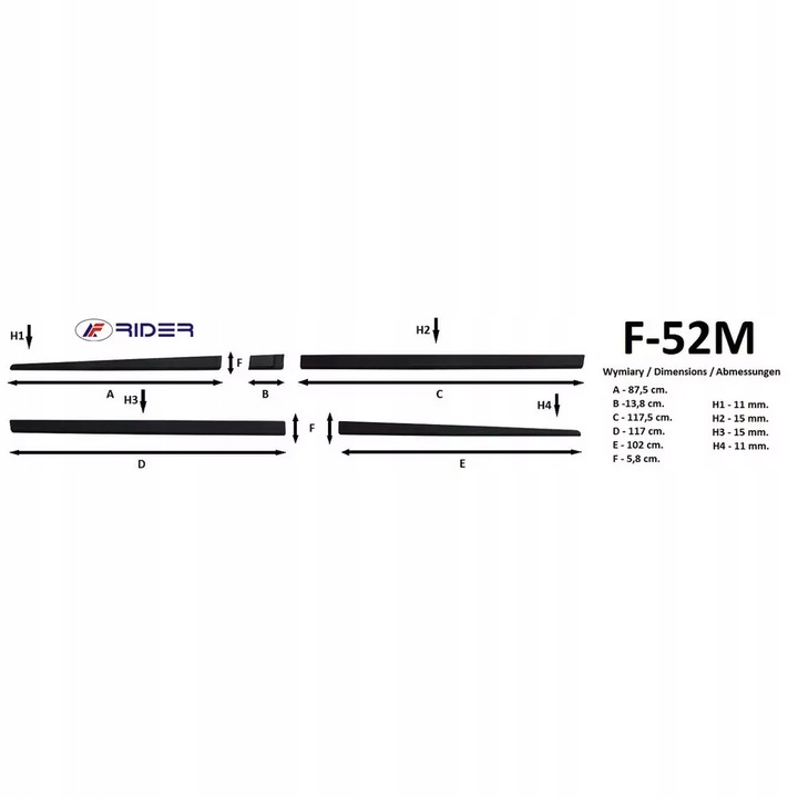 Samochodowe listwy boczne RIDER bardzo dobrze zabezpieczają drzwi samochodu oraz ich przetłoczenia przed obiciami i zarysowaniami mogącymi powstać podczas parkowania w ciasnych przestrzeniach. Listwy montowane są bez ingerencji w nadwozie samochodu. Montaż odbywa się za pomocą taśmy samoprzylepnej 3M fabrycznie zaaplikowanej na powierzchnię listew.