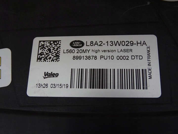 Лампа передняя range rover velar l8a213w029ha