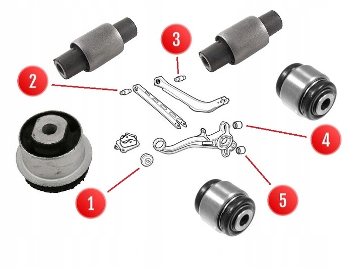3. Dolna i górna wewnętrzna tuleja wahaczy poprzecznych 4 sztuki