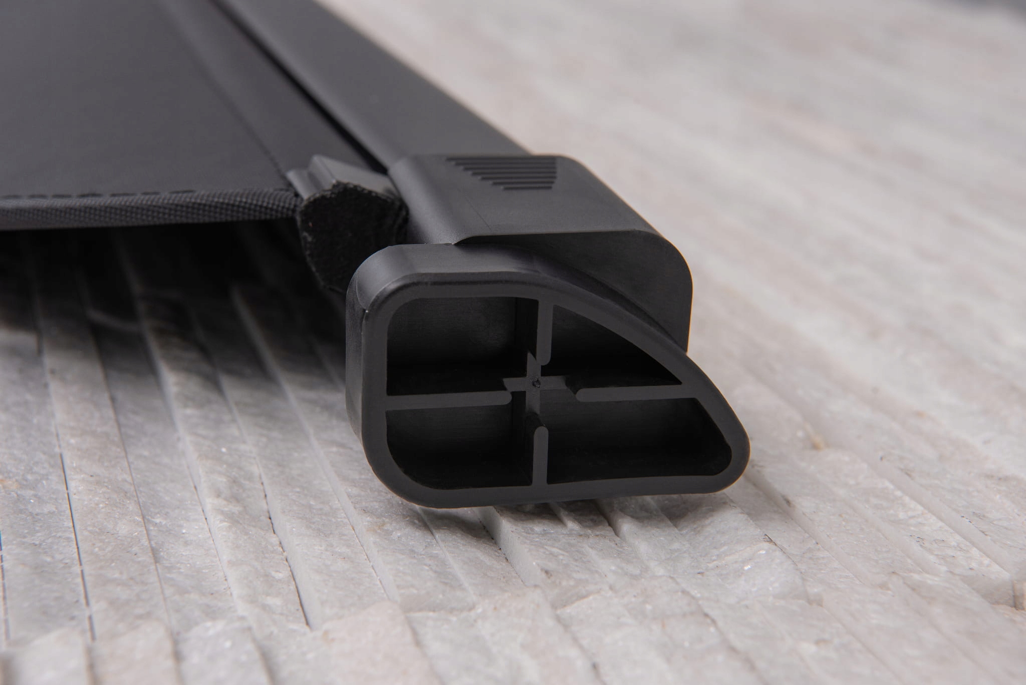 Solidna kaseta oraz aluminiowa płyta zapewniają trwałość konstrukcji i wygodę użytkowania rolety. Kaseta zaprojektowana została w taki sposób, aby umożliwić stabilne zamocowanie w oryginalnych, fabrycznych miejscach montażowych za tylnymi fotelami.
