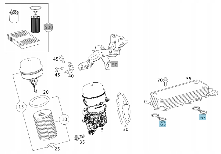 ZESTAW USZCZELEK CHŁODNICY OLEJU MERCEDES V6 OM642