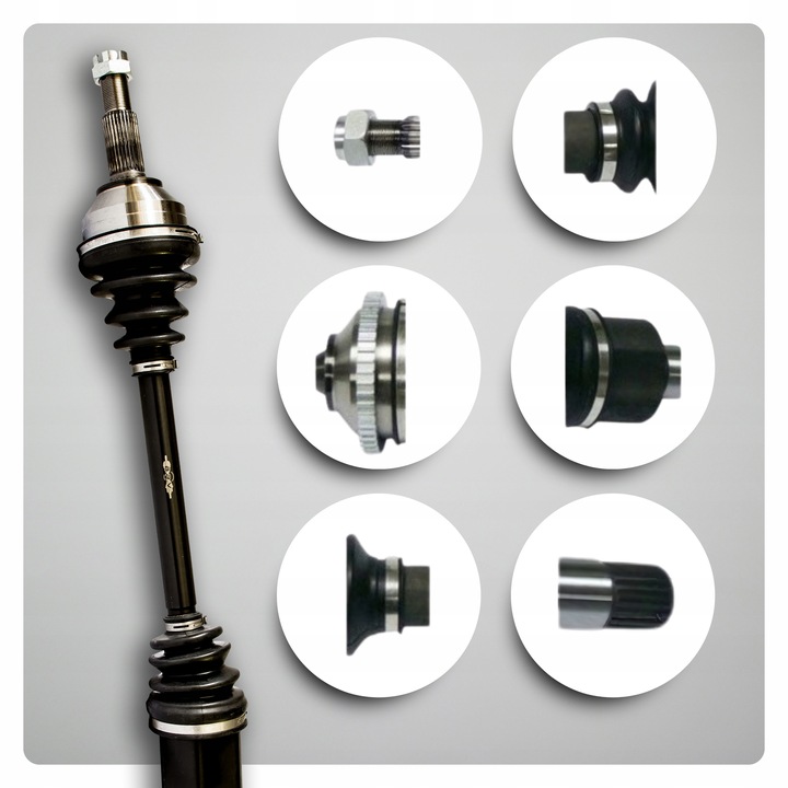 Każdy zestaw naprawczy BRV zawiera wszystkie niezbędne elementy, w tym zmontowaną półoś napędową, wałek, zewnętrzny i wewnętrzny przegub homo-kinetyczny, smar, osłony neoprenowe, opaski zaciskowe oraz nakrętkę (śrubę montażową).