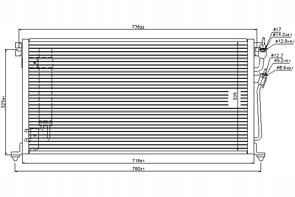 - Wymiary radiatora: 716 x 335 x 16 mm