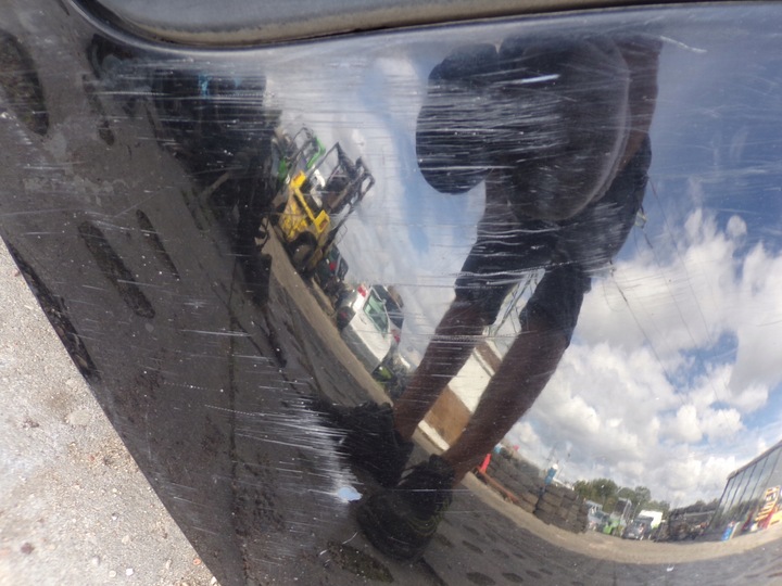 - ZDERZAK POSIADA USZKODZENIA POWŁOKI LAKIERNICZEJ ORAZ PĘKNIĘCIE PRZEDSTAWIONE ZDJĘCIACH