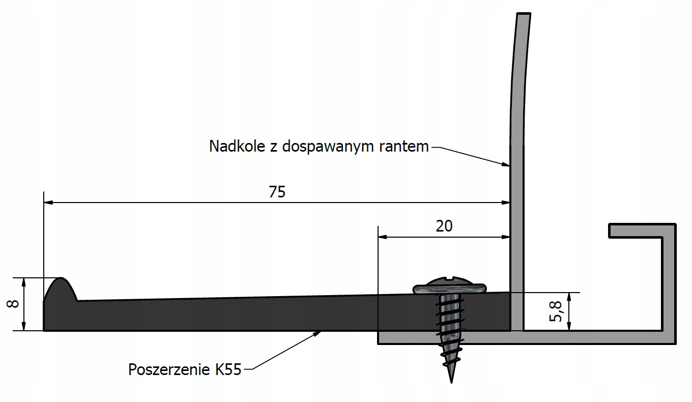 - 4 odcinki poszerzeń 5,5 cm o długości 1,6 m każdy.