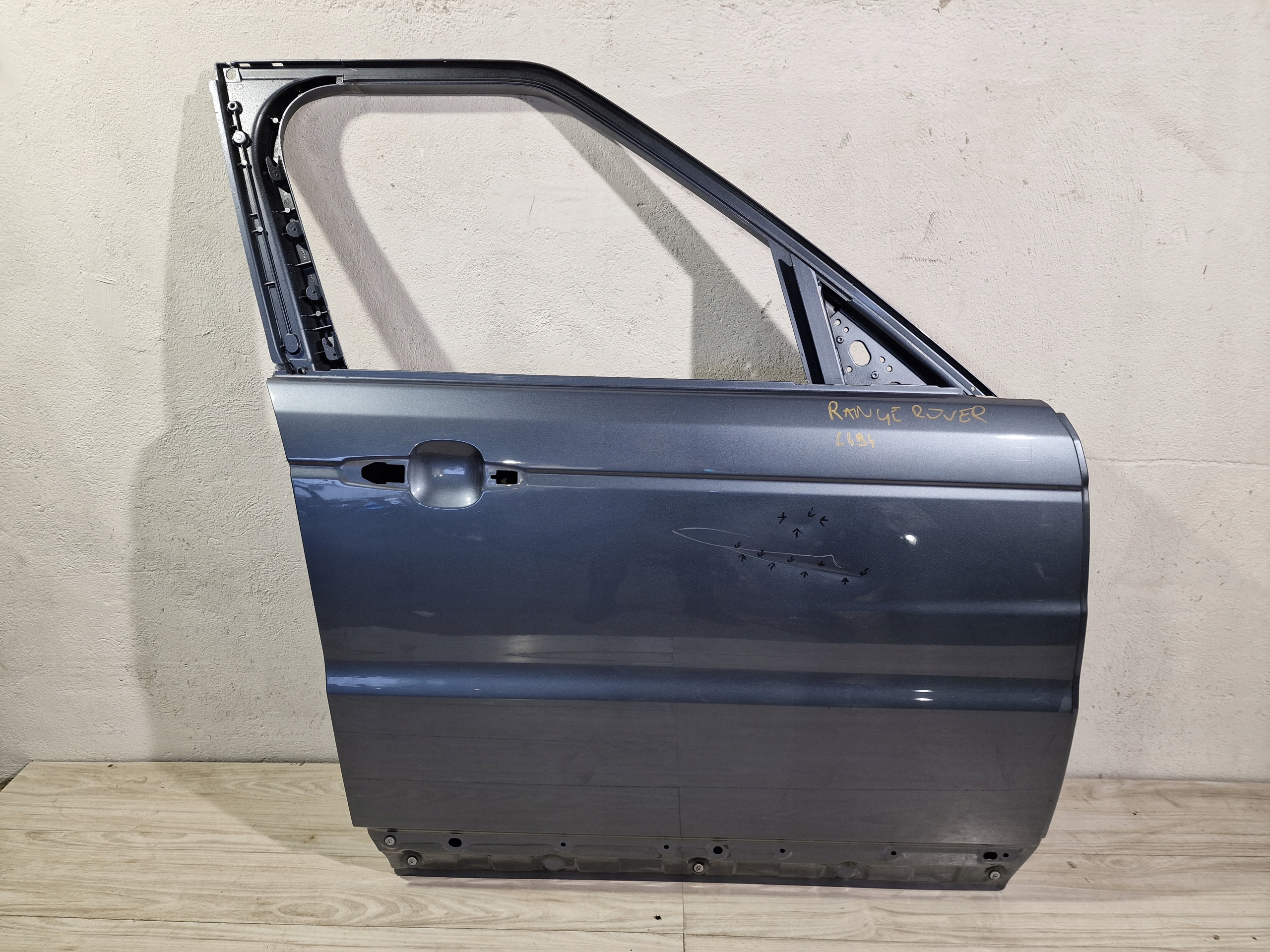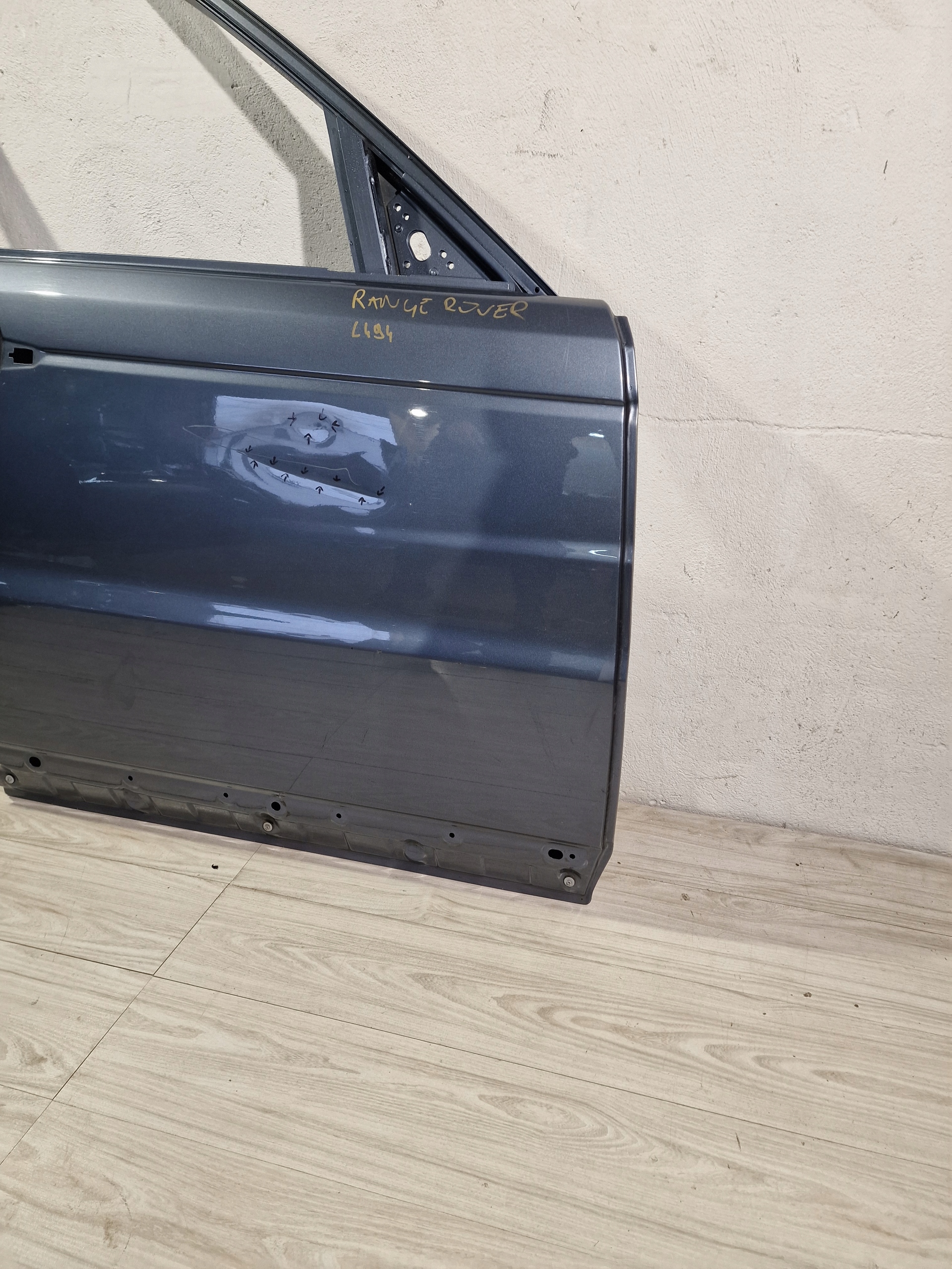 RANGE ROVER SPORT II 2013- DRZWI PRAWE PRZEDNIE stan jak na zdjęciu uszkodzenia zaznaczone marker do naprawy blacharsko lakierniczej
