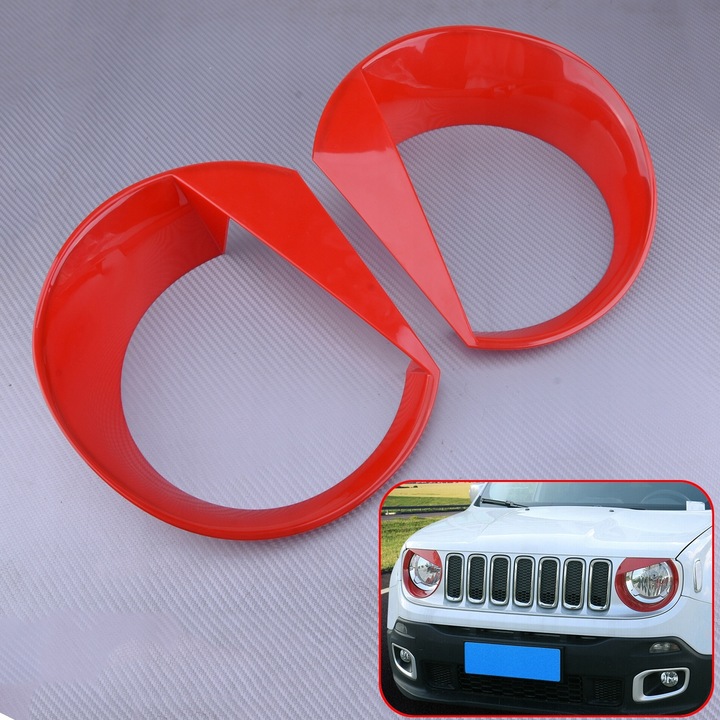 2Pcs Red Birds Eyes Style Headlight Lamp Trim Cover Bezel Fit for Jeep Renegade 2016-2018