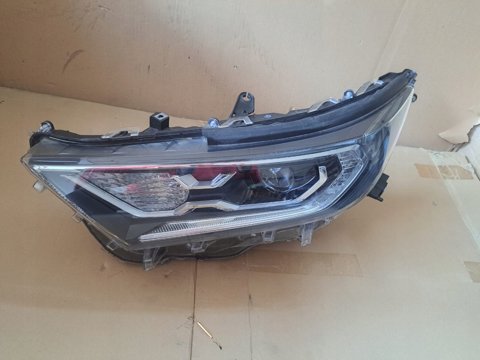 PRZEDMIOTEM SPRZEDAŻY JEST LAMPA PRZEDNIA LEWA FULL LED DO TOYOTA RAV 4 V . LAMPA POSIADA PĘKNIĘCIE WIDOCZNE NA ZDJĘCIU NUMER 6 . POZA TYM LAMPA POSIADA DWA BARDZO DELIKATNE ZARYSOWANIA ,MAŁO WIDOCZNE . WERSJA EU.