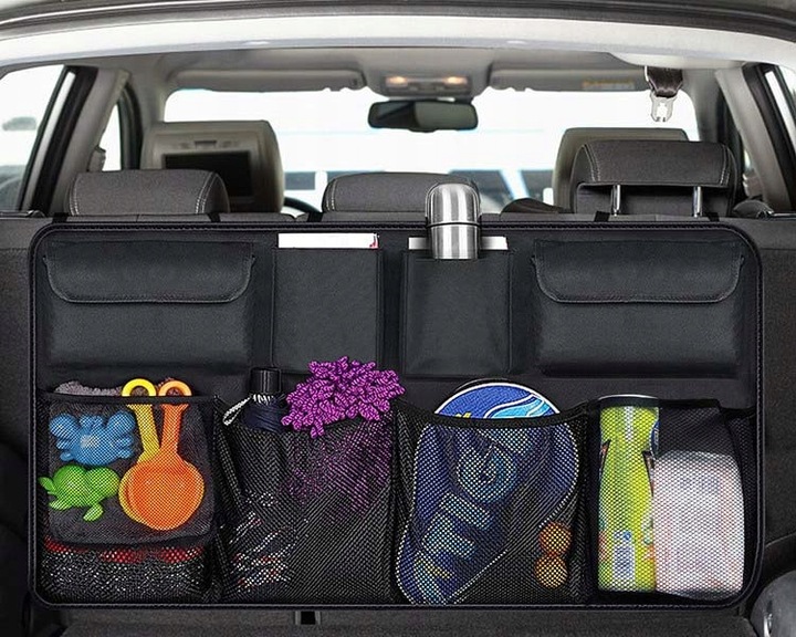 - Co ważne - przy gwałtownych hamowaniach wszystkie przedmioty umieszczone w organizerze zostaną na swoim miejscu. Można go umiejscowić w bagażniku lub na tylnych siedzeniach samochodu.