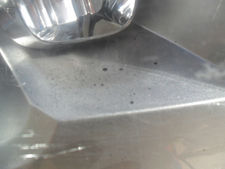 Zniszczony odbłyśnik w środku (plamki)