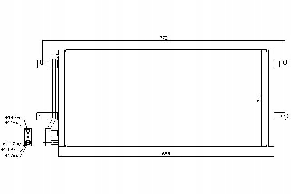 - Wymiary radiatora: 685 x 310 x 16 mm