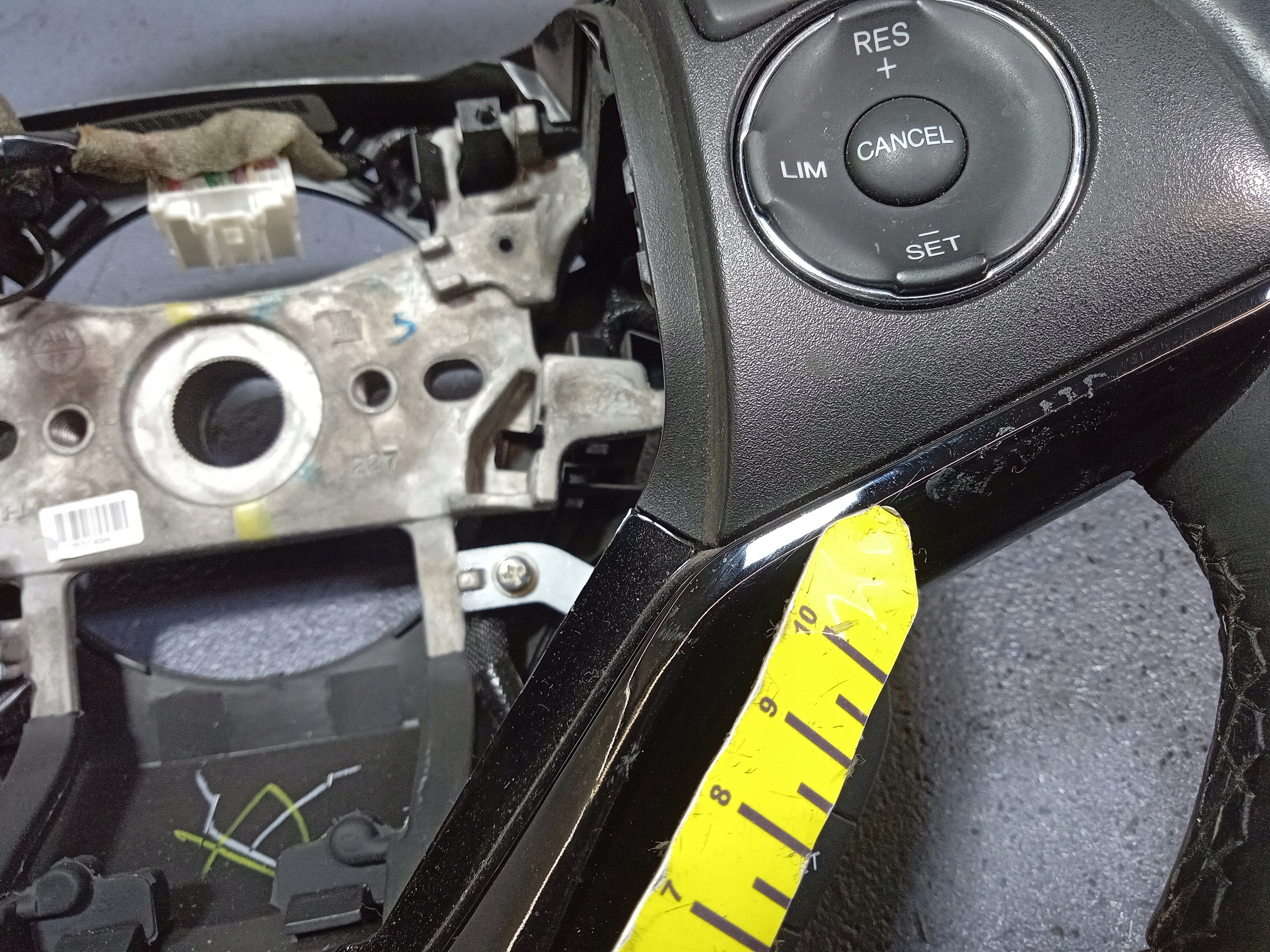 Opis: kierownica trójramienna, skórzana, z multifunkcją, widoczne ślady użytkowania -jakość B && HONDA HR-V II KIEROWNICA SKÓRA MULTIFUNKCJA