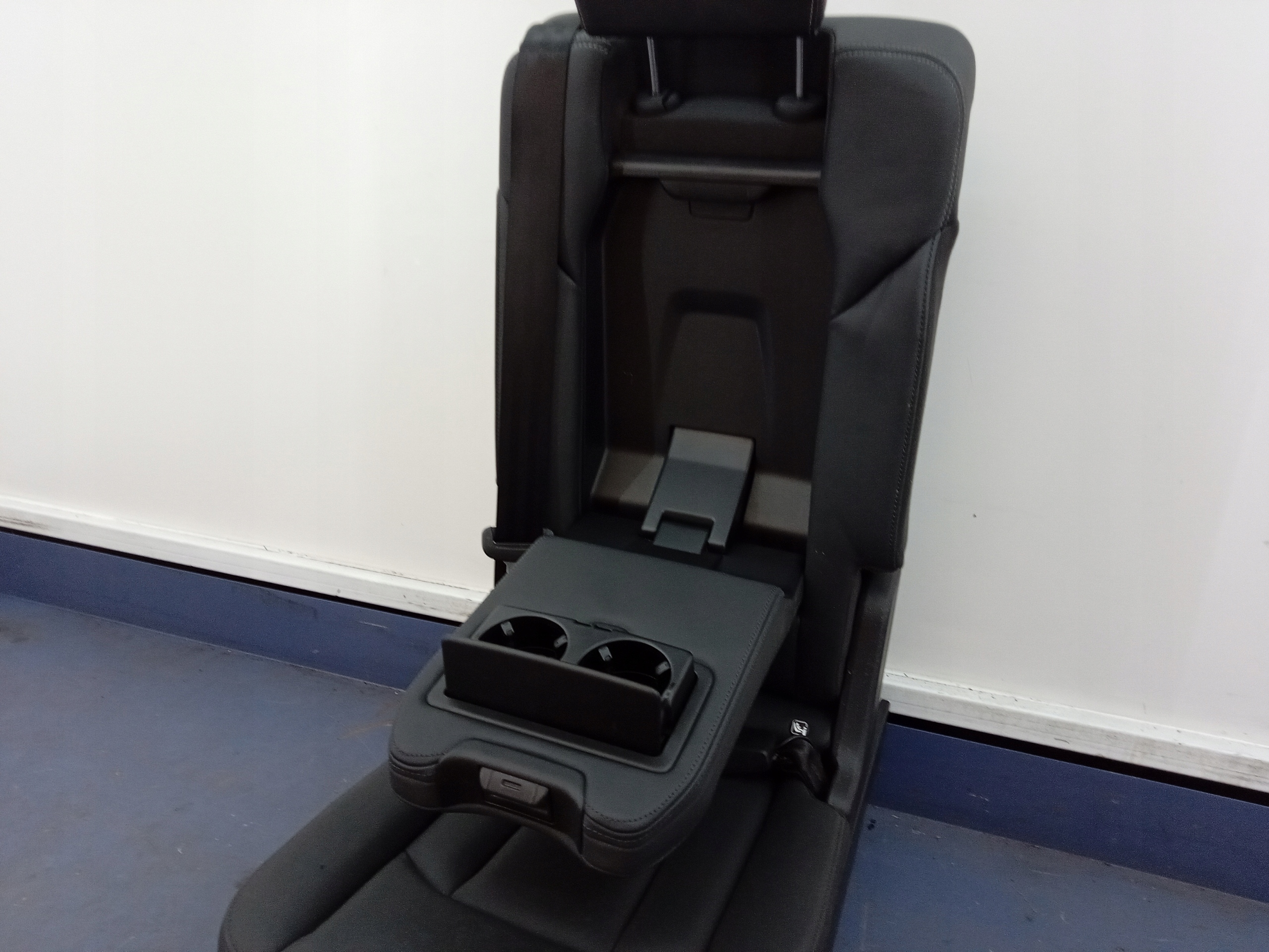 Opis: fotel środkowy drugiego rzędu siedzeń, składany, z uchwytami isofix, podłokietnikiem, skóra valcona czarna, widoczne ślady użytkowania, -jakość B && AUDI Q7 II 4M FOTEL TYŁ TYLNY ŚRODKOWY 2 II RZĄD