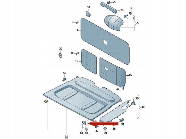 Зажим крючок полки багажника правые vw caddy 04-20