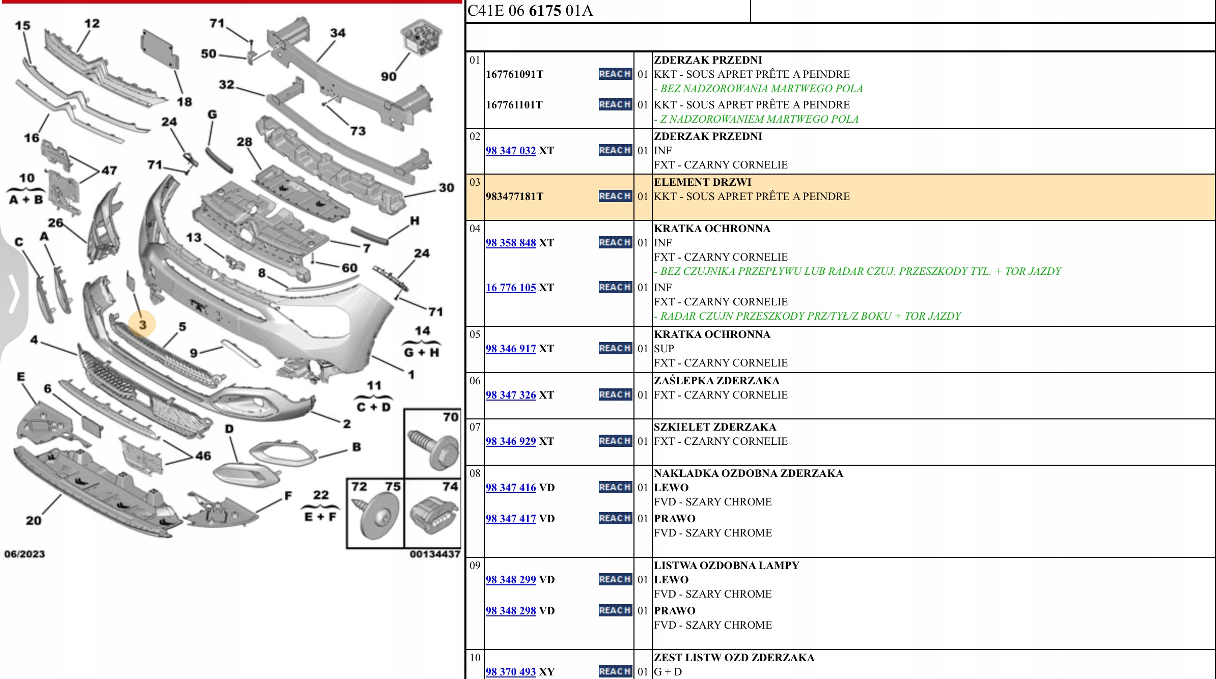 ORYGINALNA FABRYCZNIE NOWA ZAŚLEPKA ZDERZAKA PRZEDNIEGO DO: