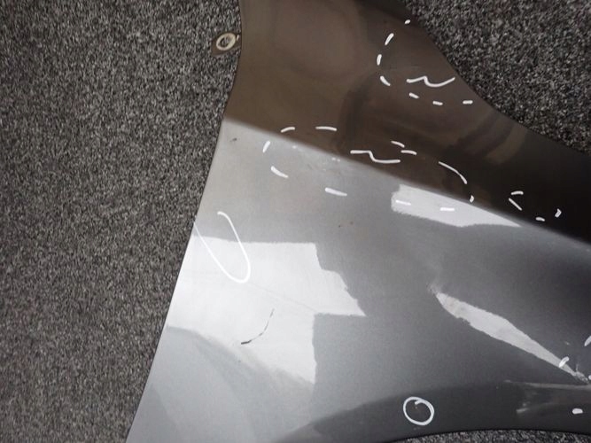 Błotnik w zaznaczonym miejscu uszkodzony