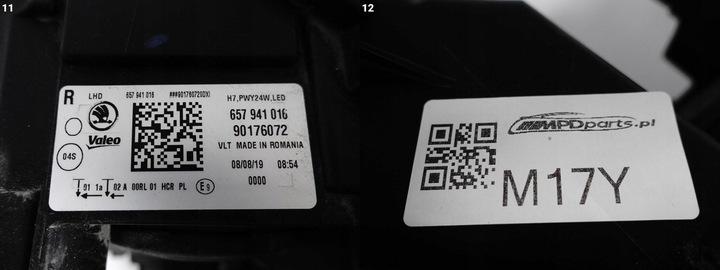 Skoda scala 657 19- лампа обычная h7 + led правая eu