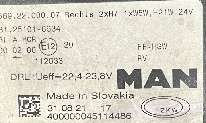 MAN TGS TGX LIONS CITY LAMPA REFLEKTOR PRAWA PRZÓD Z DRL 81251016634