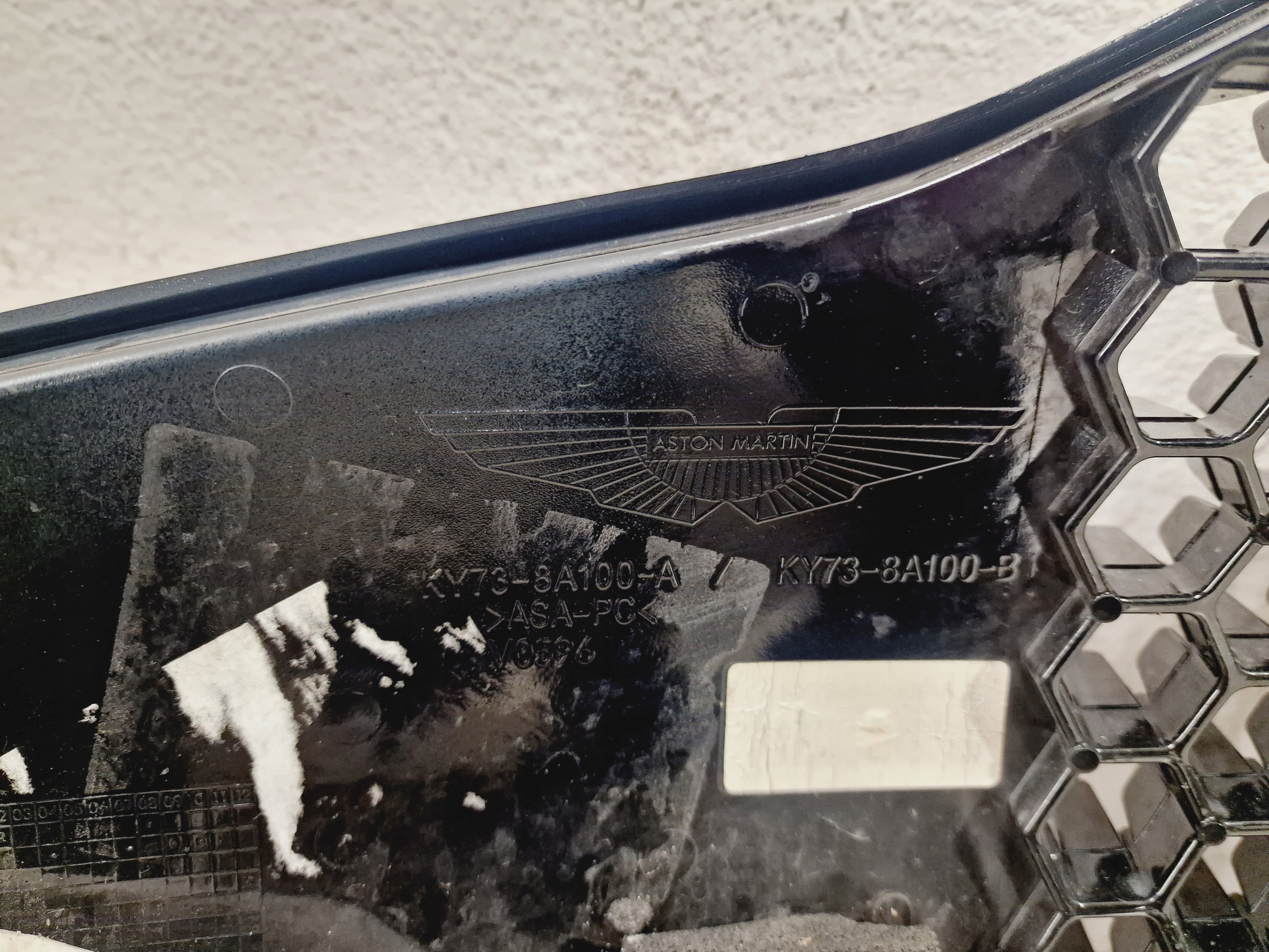 GRILL ASTON MARTIN DBS SUPERLEGGERA stan jak na zdjęciu minimalne 3 pęknięcia do naprawy, wszystkie mocowania całe