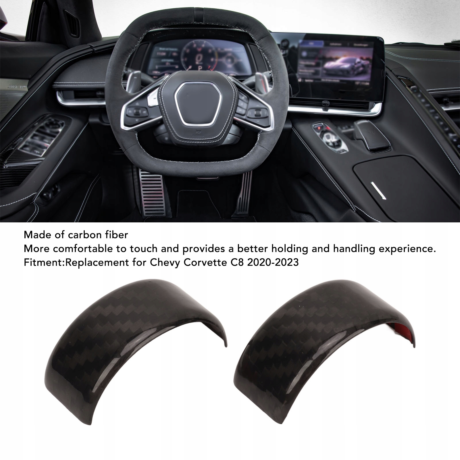 1. Odpowiedni model: Koło wykończenia kierownicy zastępuje Chevy Corvette C8 2020–2023. Przed zakupem proszę potwierdzić, czy Twój model ma zastosowanie.
