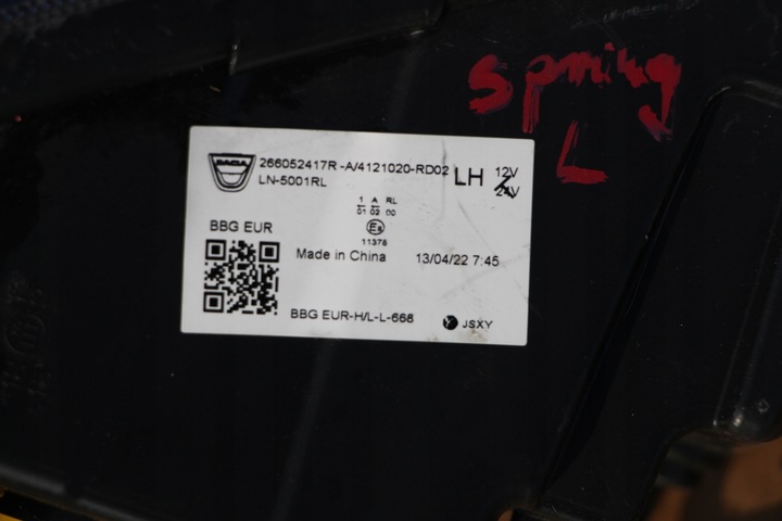 | Каталожный номер запчасти: | 266052417R, oryg, DACIA, Spring, drl |