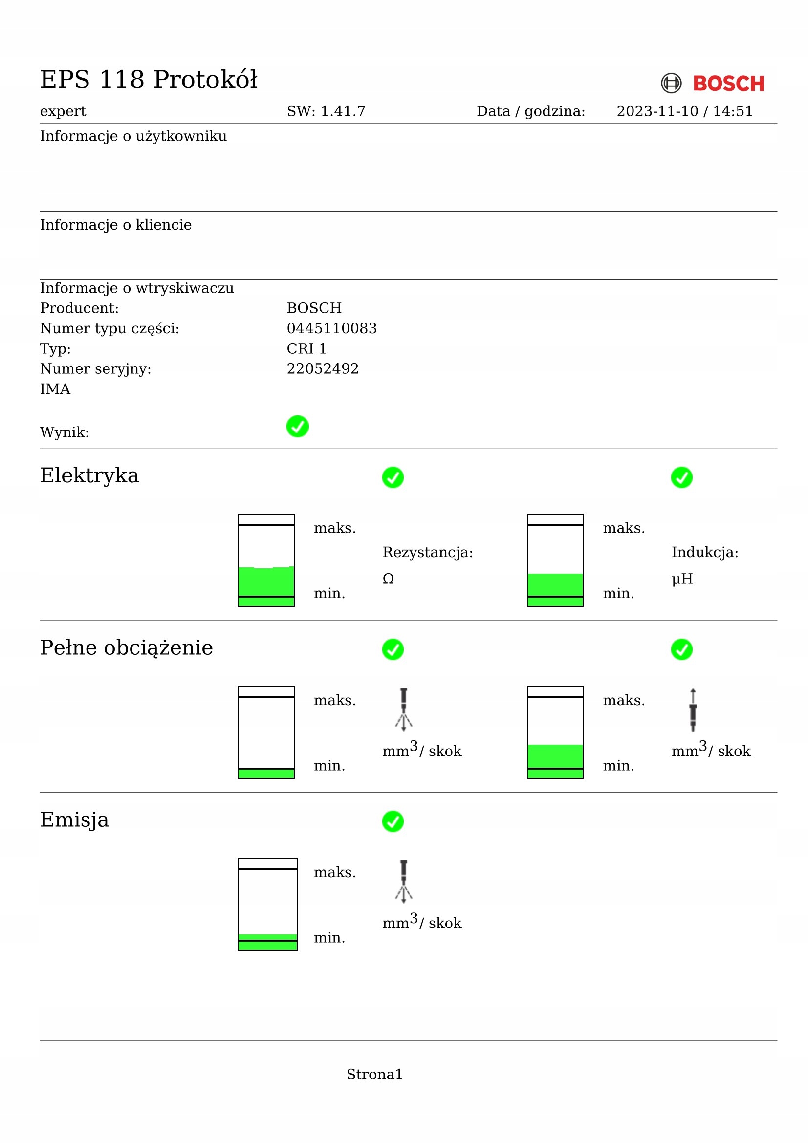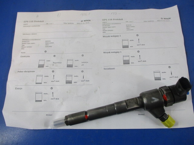Opis: BOSCH 0445110083, 1 szt, testowany na urządzeniu BOSCH EPS118, wynik testu na zdję ciu (C,FL,1.3CDTi,16V,55kW,75KM,ABS,4d minivan,kod silnika Z13DTJ,kod koloru Z157) -jakość A && OPEL 1.3CDTi WTRYSKIWACZ 22052492 BOSCH 0445110083 TESTOWANY
