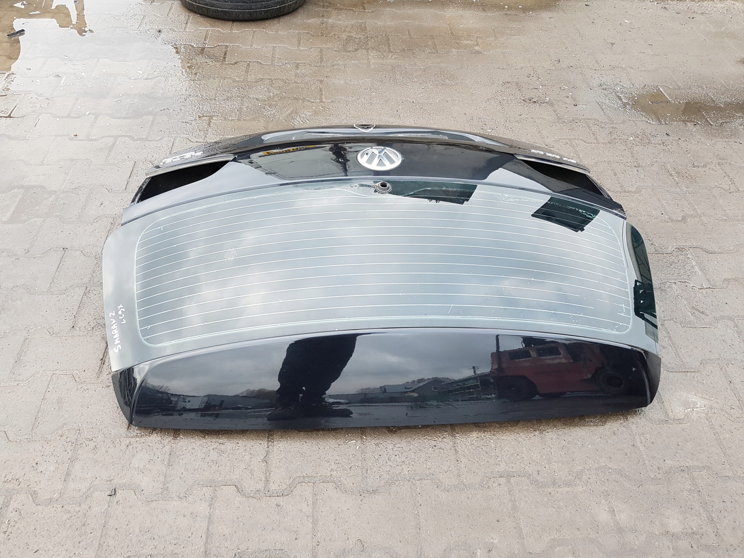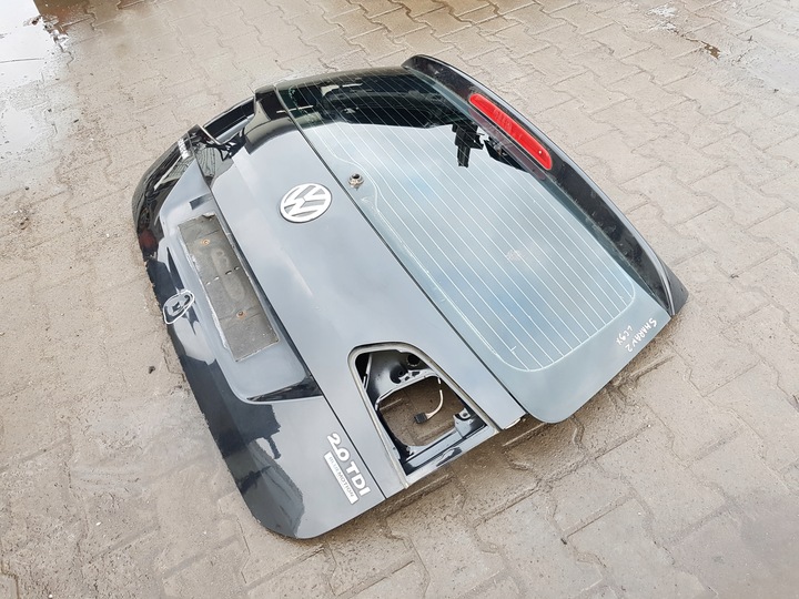 VW SHARAN 7N 10-15r KLAPA BAGAŻNIKA TYŁ. POSIADA WGIĘCIE, ZADRAPANIA I ODPRYSKI LAKIERU Z OZNAKAMI KOROZJI. KOD LAKIERU LC9X. GOŁA KLAPA Z SZYBĄ.