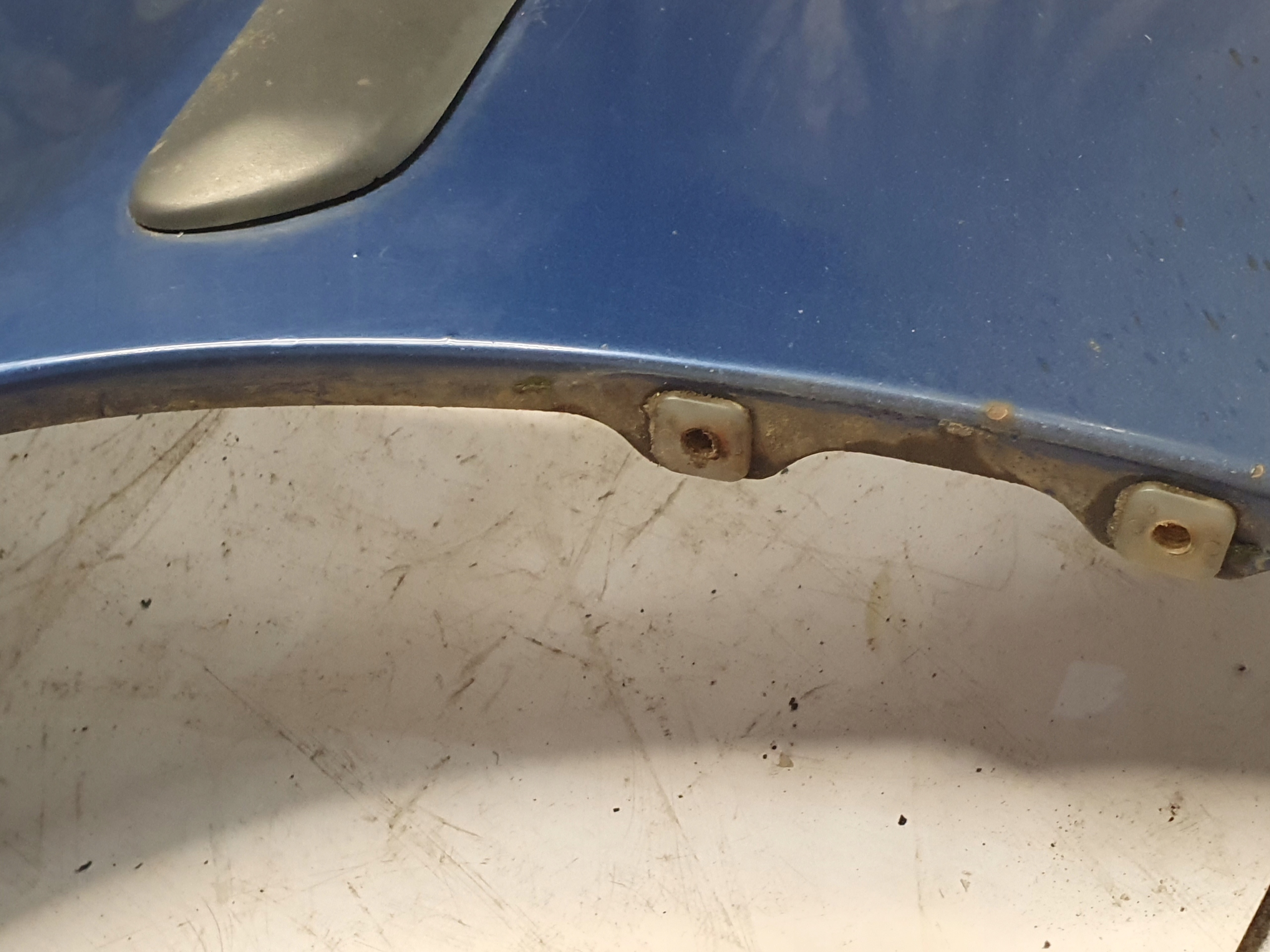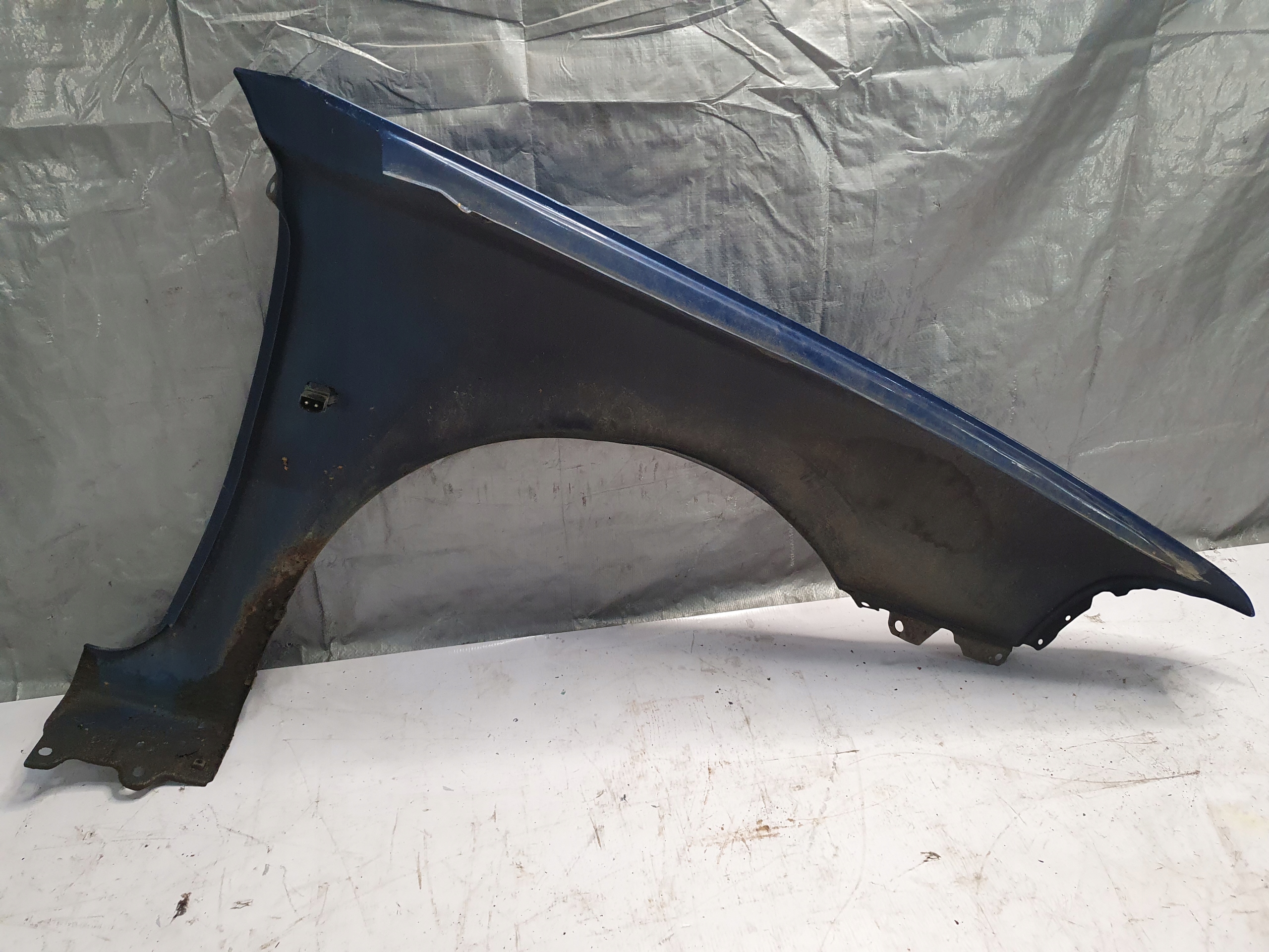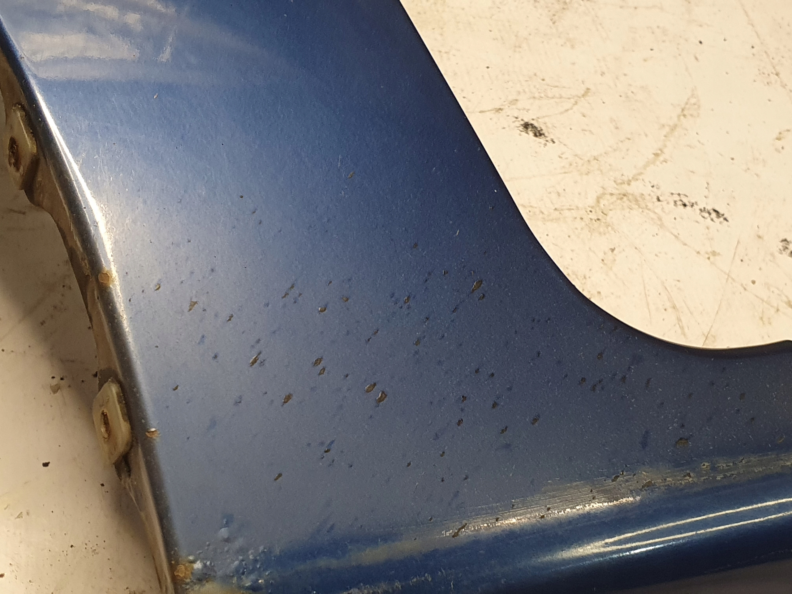 BŁOTNIK POSIADA RYSY, ODPRYSKI, ŁUSZCZĄCY SIĘ LAKIER BEZBARWNY ORAZ OGNISKA KOROZJI OD WEWNĘTRZNEJ STRONY ORAZ W DOLNEJ CZĘŚCI.