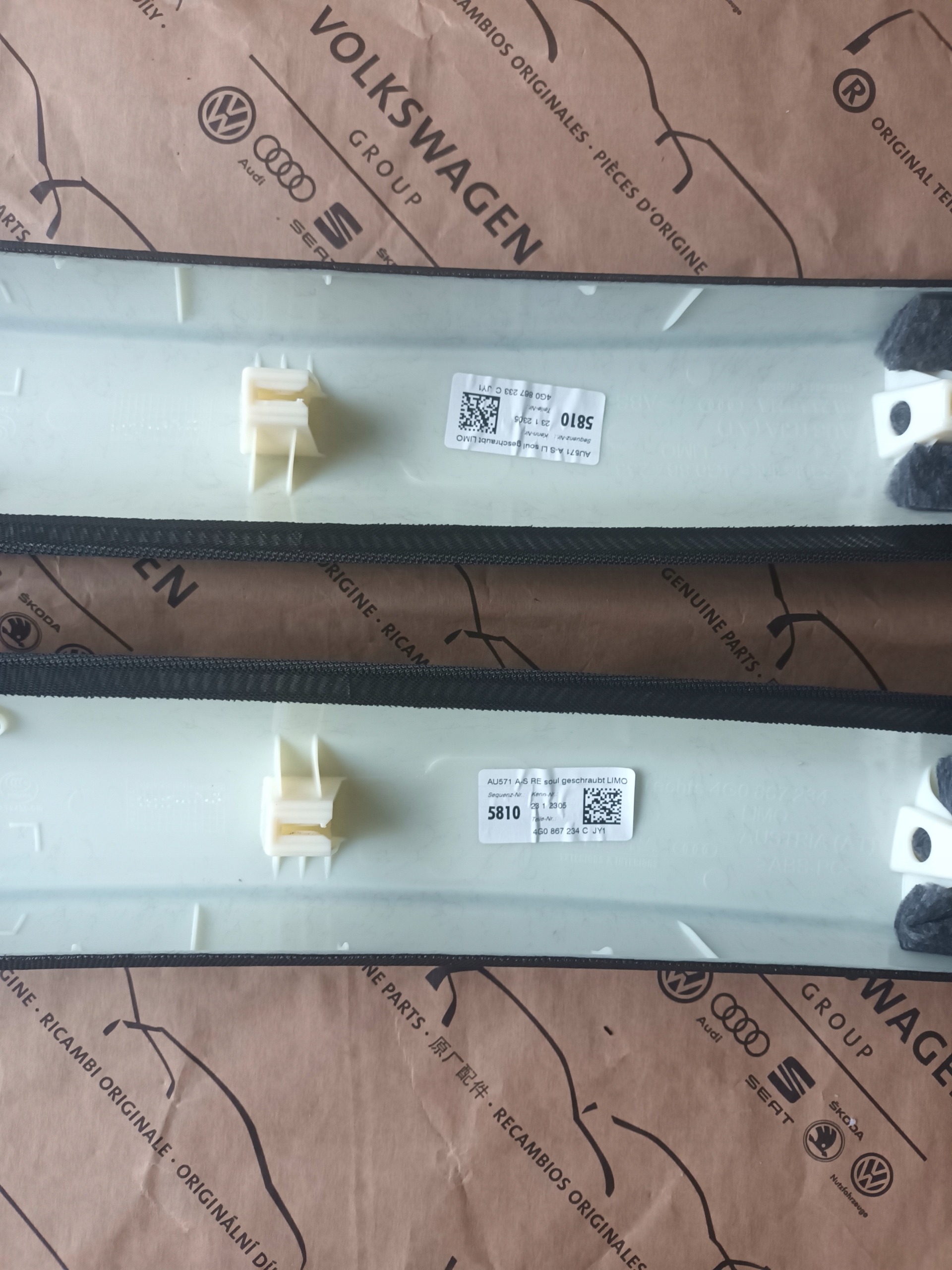 Osłona słupka A prawa lub lewa 4G0867233C JY1 4G0867234C JY1 do Audi A6 C7 4G Lift, cena za sztukę przy zamówieniu prosimy o informacje który mamy wysłać, przy zakupie dwóch wysyłamy prawy i lewy. Osłona pochodzą z auta testowego ( nie z auta powypadkowego) Audi A6 C7 4G Sedan LIFT 2017 r z udokumentowanym przebiegiem 30 km, osłony w bardzo ładnym stanie, rok produkcji 2017 roku, posiadamy większość osłon przód tył do tego modelu. Nasze części pochodzą z legalnego źródła więc można je kodować w dowolnym salonie Audi maja również gwarancje przebiegu i pochodzenia auta z którego zostały wymontowane. Sprzedajemy części widoczne na zdjęciach, możliwość dostawy, posiadamy taki sam komplet na przód.