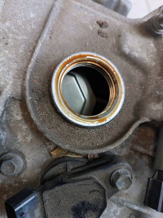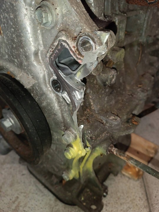 Silnik pochodzie z demontażu w USA, uszkodzona osłona łańcucha rozrządu.