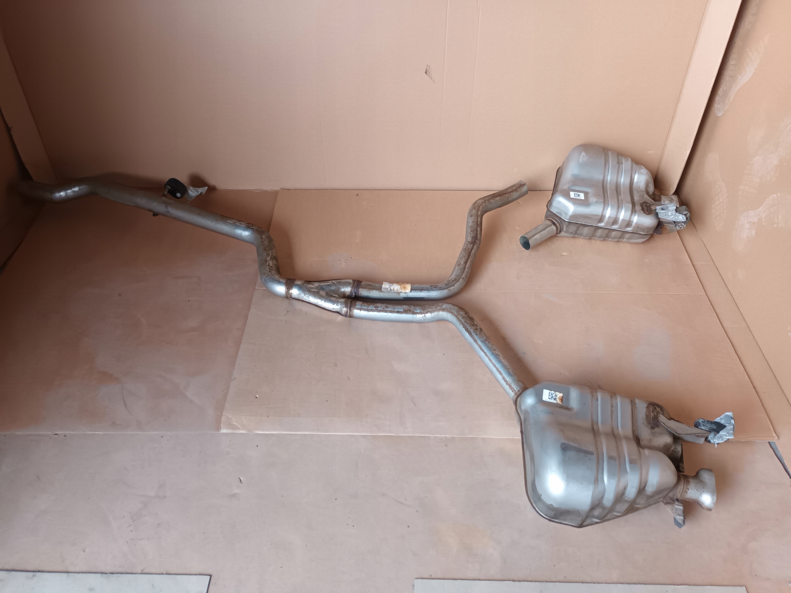 Tłumik wydech końcowy do Audi A6 C7 4G 2.0TDI lift, numery katalogowe 4G0253612M 4G0253611M cena za przedmiot ze zdjęcia. Wydech pochodzi z auta testowego Audi A6 7 2.0 TDI Sedan lift z 2017 roku z udokumentowanym przebiegiem 28 km. Wydech w jest w idealnym stanie jak nowy, podgadamy cały układ wydechowy do tego modelu. Nasze części pochodzą z legalnego źródła więc można je kodować w dowolnym salonie Audi maja również gwarancje przebiegu i pochodzenia auta z którego zostały wymontowane. Sprzedajemy części widoczne na zdjęciach.