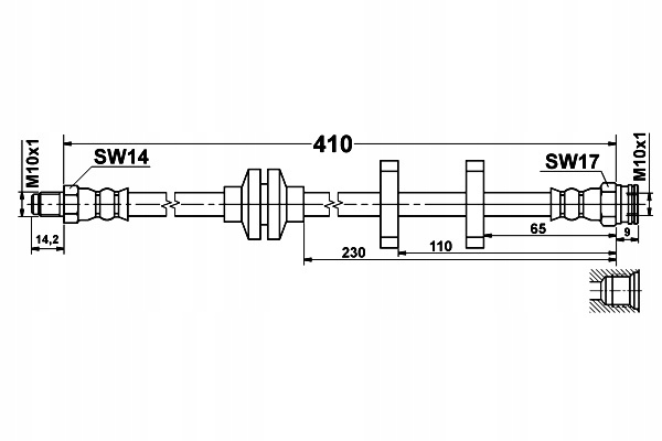 Przewód hamulcowy elastyczny przód L/P (dł. 410mm, M10x1/M10x1) FIAT BRAVO II, MAREA, STILO LANCIA DELTA III, LYBRA 1.2-2.4D 05.96-12.16 ATE