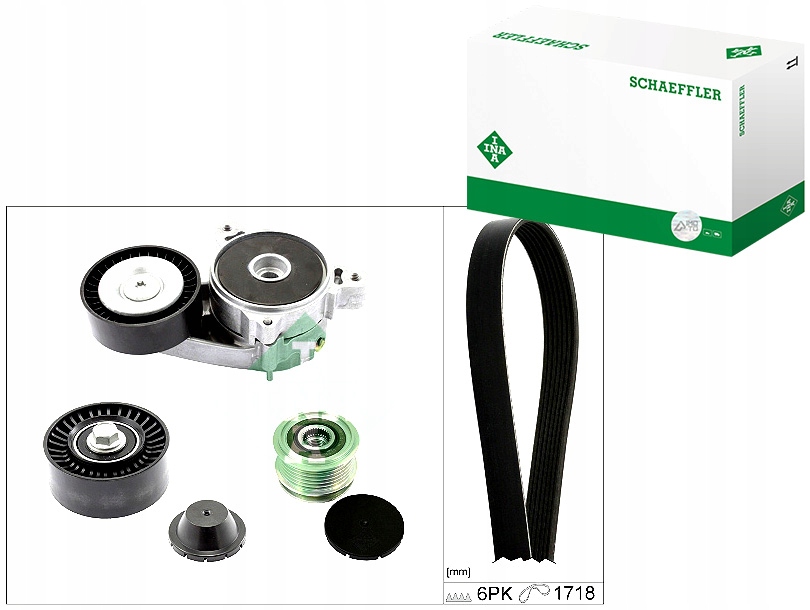 Zestaw pasków wielorowkowych z napinaczem pasuje do: DODGE CALIBER: JEEP COMPASS, PATRIOT: MITSUBISHI GRANDIS, LANCER VIII, OUTLANDER II 2.0D 09.05- INA