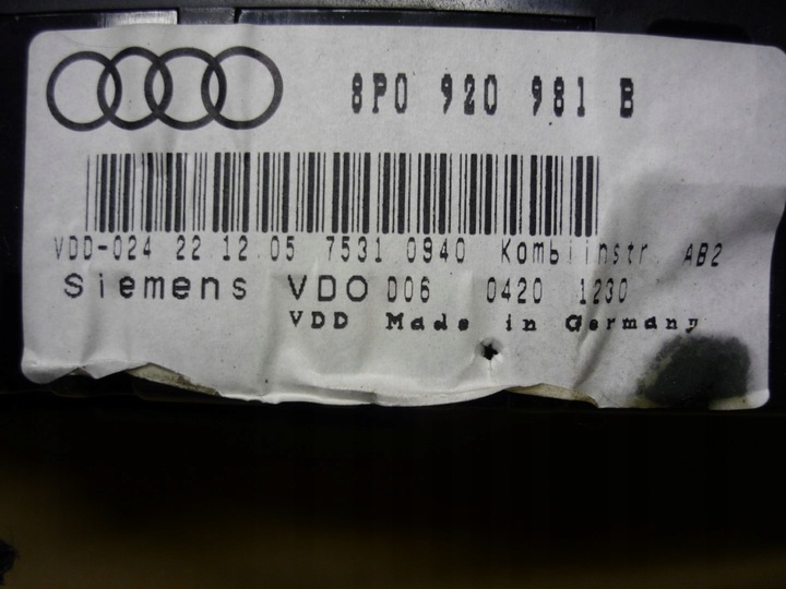 Audi a3 8p спидометр приборы 8p0920981b