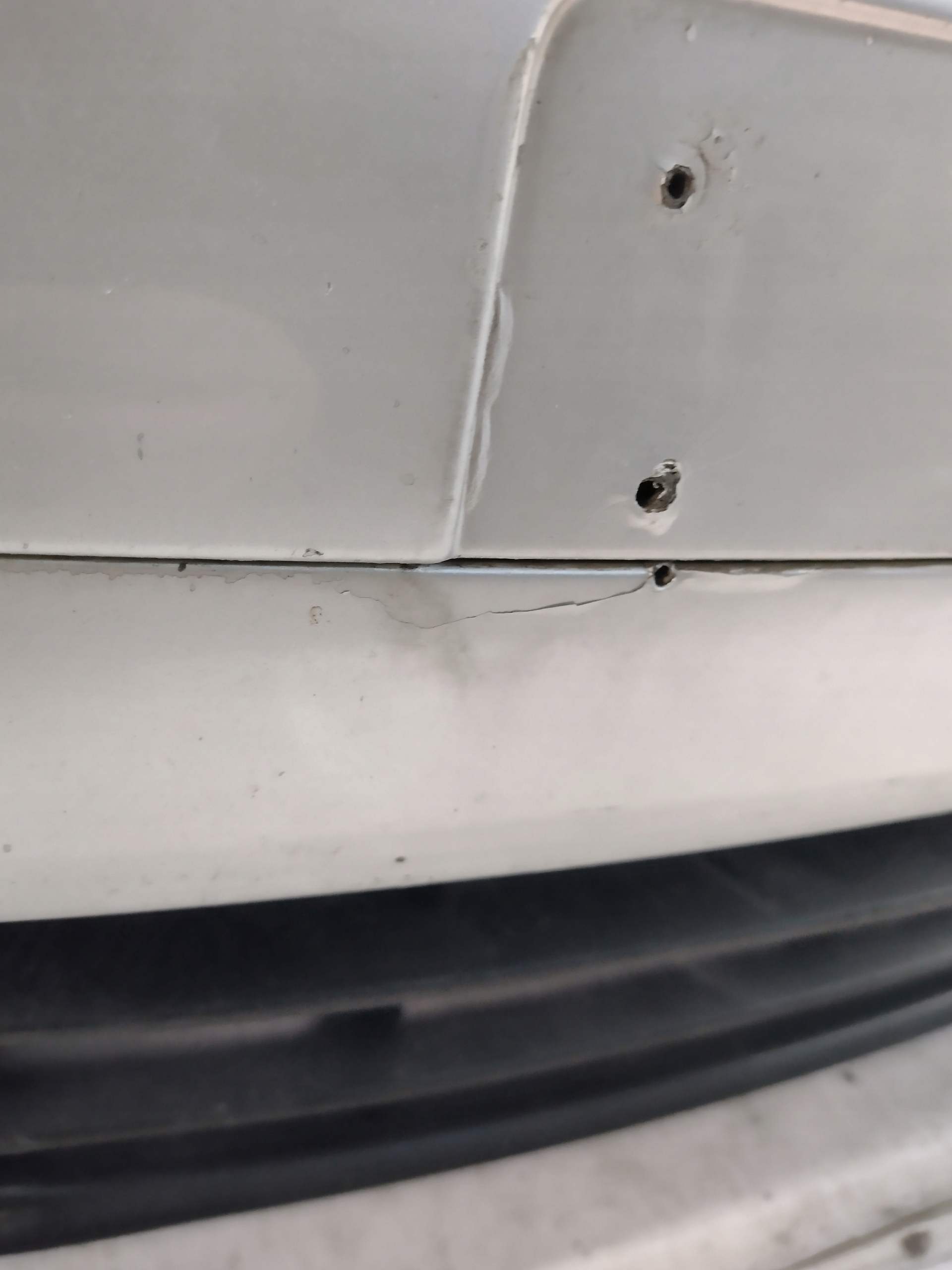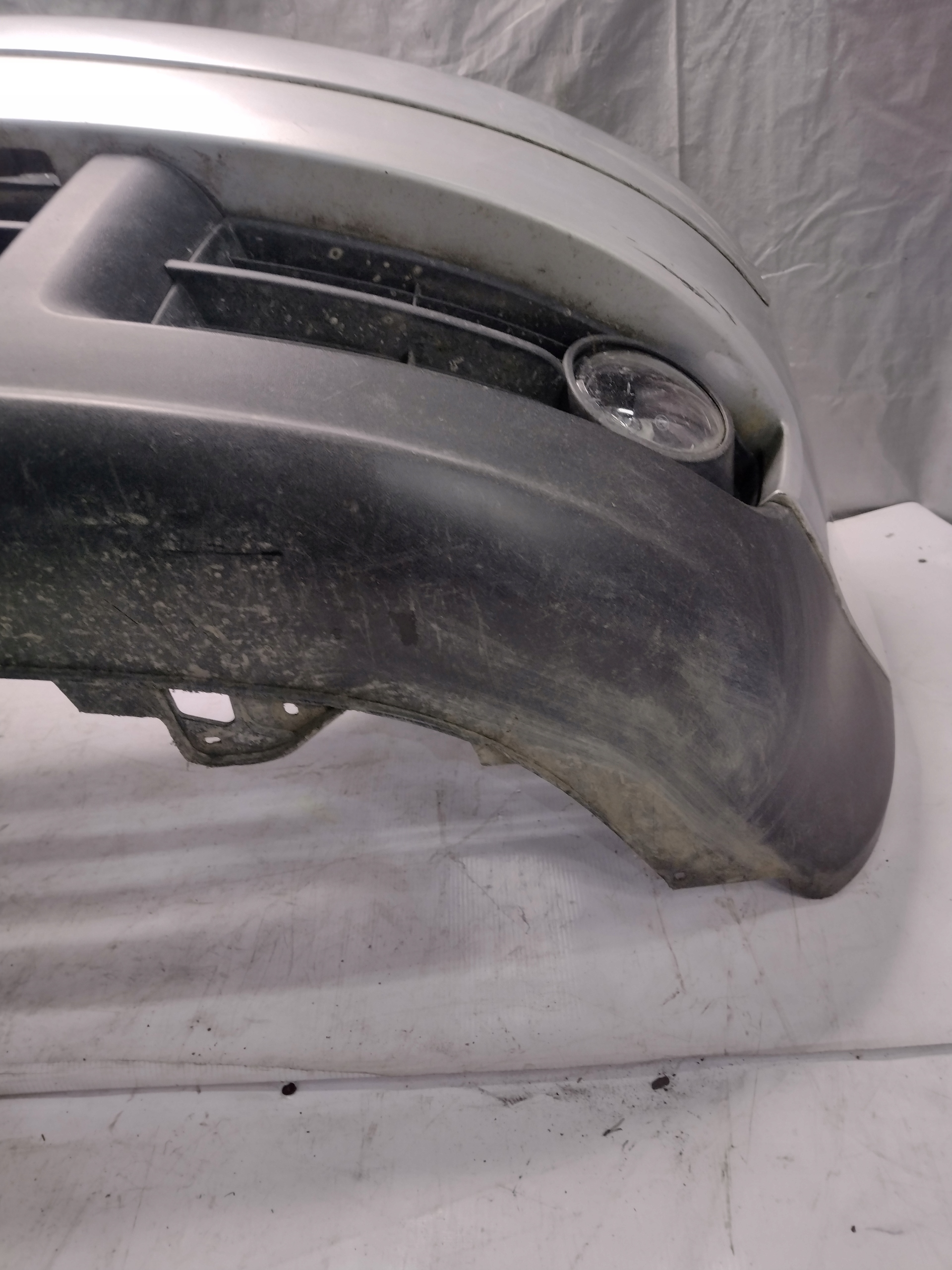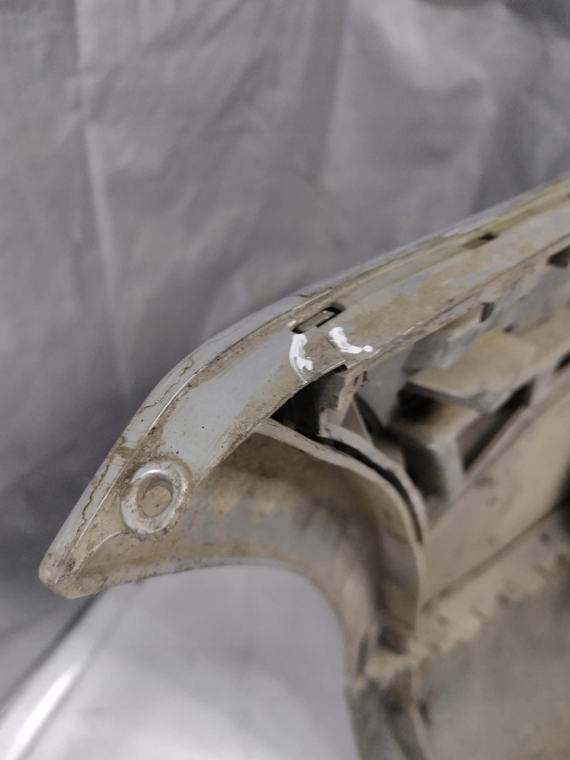 ZDERZAK POSIADA WADY TAKIE JAK RYSY, ODPRYSKI ORAZ PĘKNIĘCIA I ŚLADY PO WKRĘTACH Z PRAWEJ STRONY, BRAK ZAŚLEPKI HAKA ORAZ USZKODZONE ELEMENTY MOCUJĄCE JAK WIDAĆ NA ZDJĘCIACH.