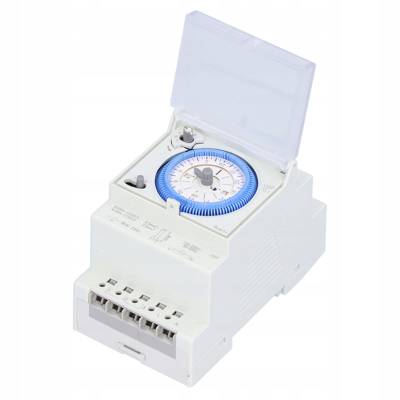 Funkcja:1. Timer mechaniczny to moduł na szynę DIN, łatwy do zainstalowania w skrzynce oświetleniowej, o niewielkich rozmiarach i pięknym wyglądzie.