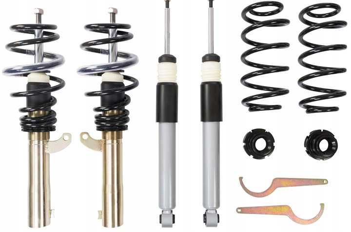 - W skład zestawu wchodzą: kompletne przednie oraz tylne zawieszenie gwintowane oraz klucz do regulacji wysokości