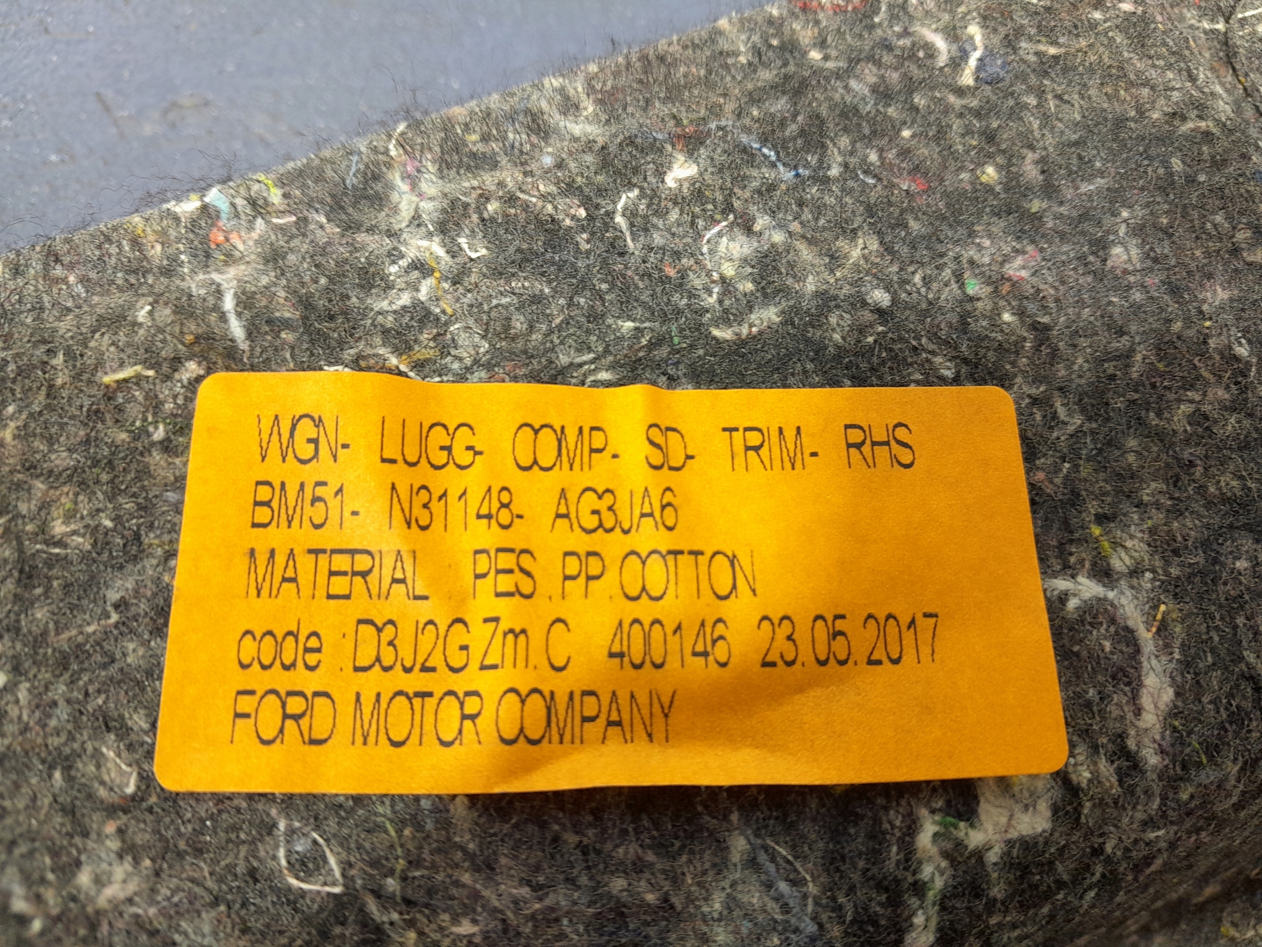 Opis: z osłoną rolety BM51-N46808-A, widoczne ślady użytkowania, komplet 2 sztuk, -jakość B && FORD FOCUS MK3 KOMBI WYKŁADZINA TAPICERKA BAGAŻNIKA PRAWA BM51-N31148-AG
