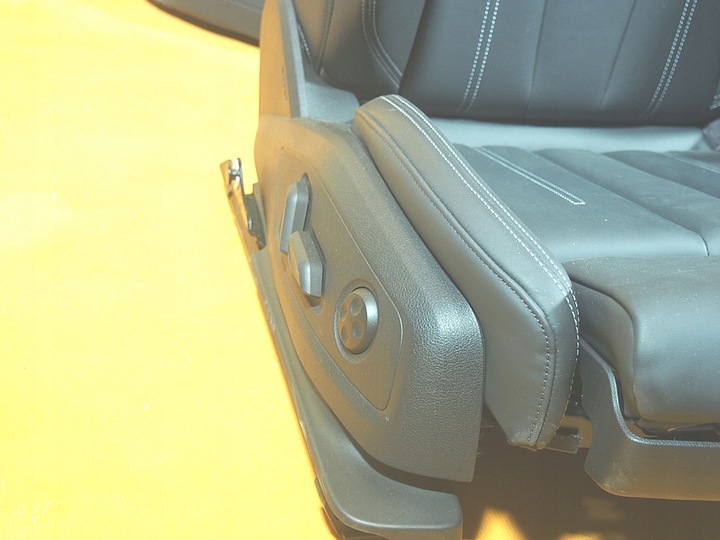- Fotel przedni – lewy i prawy z logo „S”, podgrzewane, elektrycznie regulowane, z regulacją lędźwi i pamięcią kierowcy (poduszki powietrzne zdemontowane)