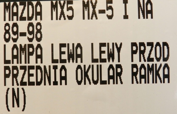 Каталожный номер запчасти: | LAMPA LEWA LEWY PRZÓD OKULAR RAMKA SIŁOWNIK MAZDA MX5 MX-5 I NA MIATA 89-98 |