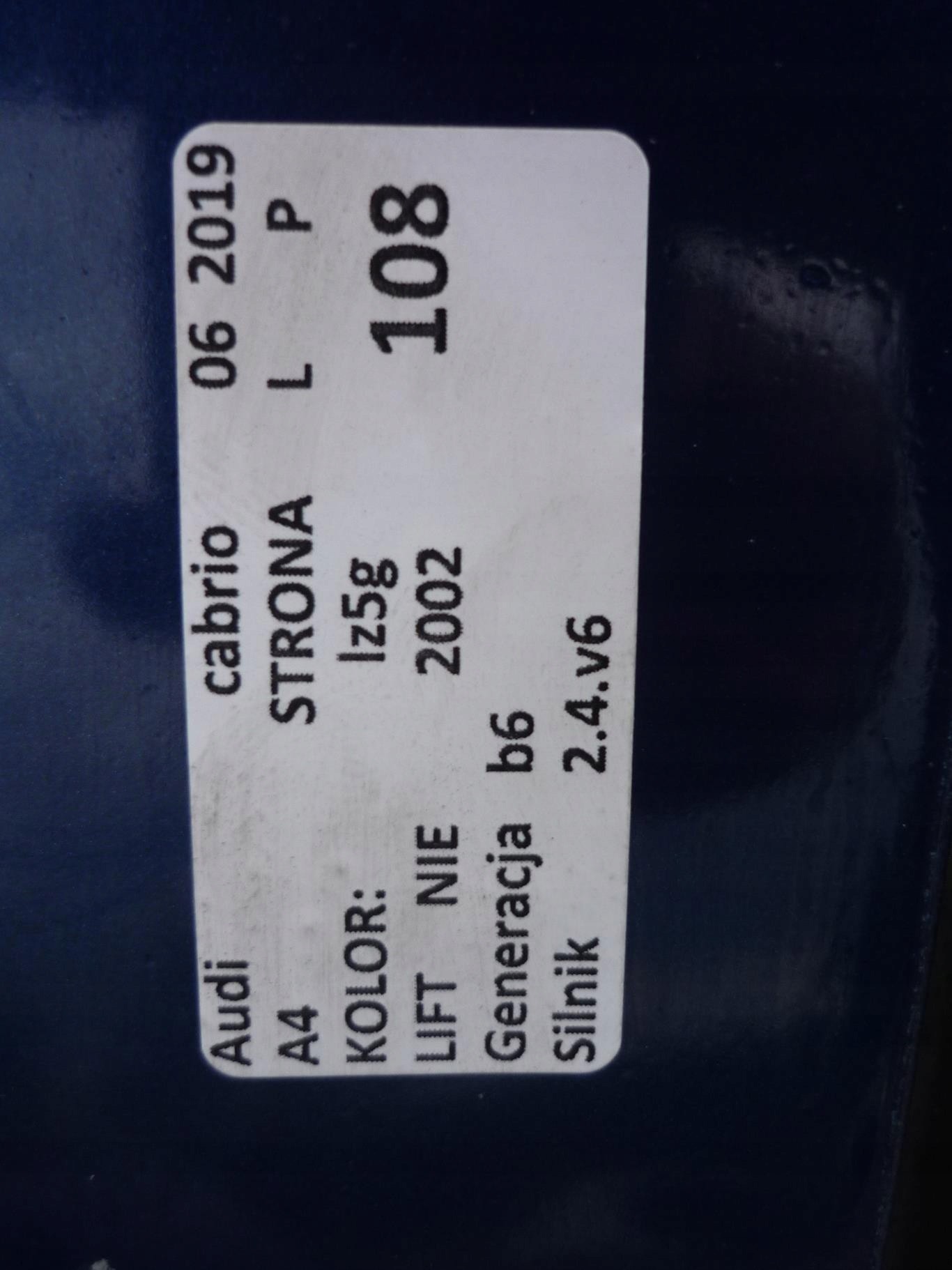 Nazwa: ZDERZAK PRZEDNI PRZÓD LZ5G AUDI A4 B6 CABRIO 02