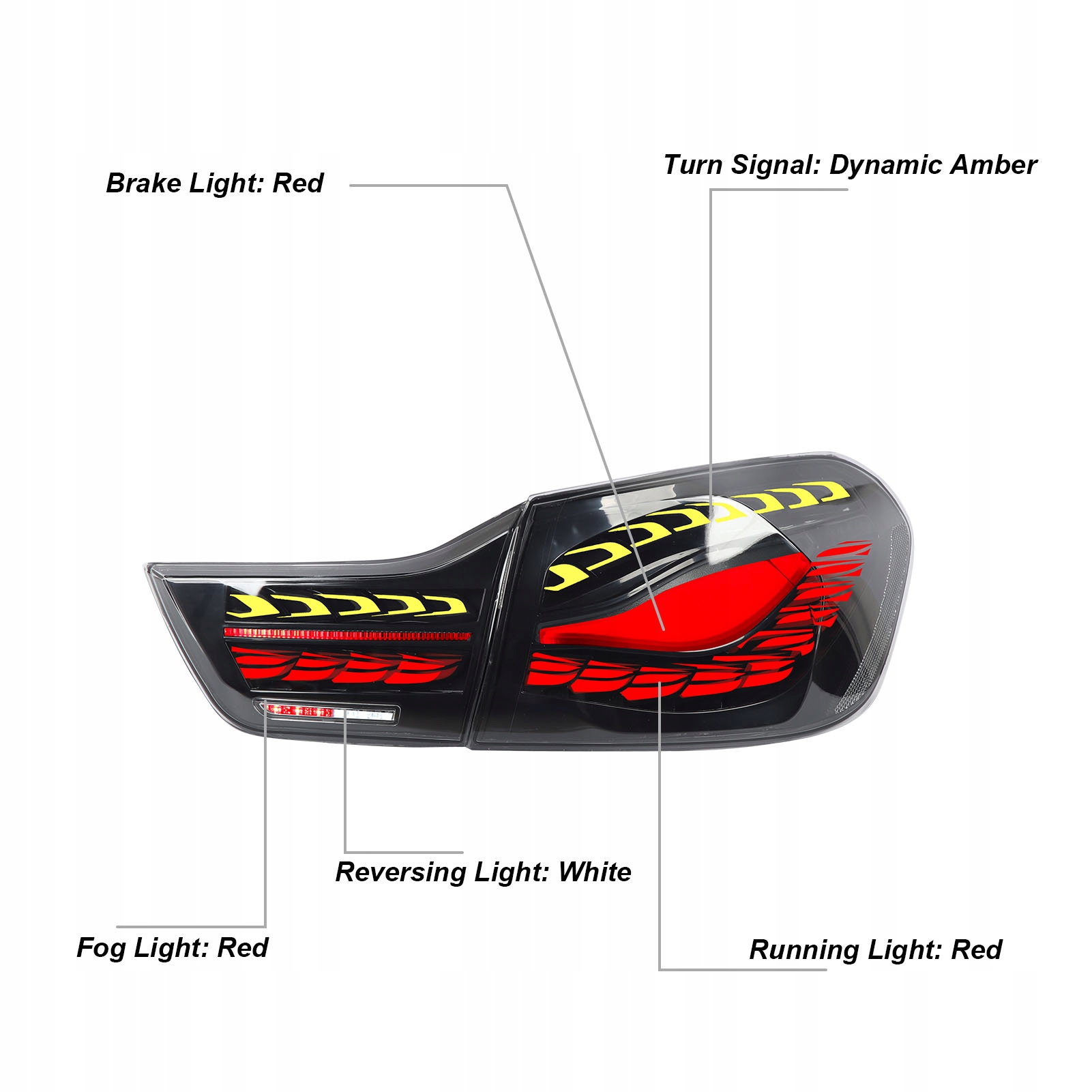 1. Odpowiedni model: Tylne światło LED zastępuje serię 4 F32 F36 M4 F82 2014–2020. Przed złożeniem zamówienia sprawdź model i rok. 2. Sportowy wygląd: składa się z szeregu pojedynczych i trójwymiarowych arkuszy emitujących światło LED, które po uruchomieniu zapalają się sekwencyjnie od końca do końca, prezentując unikalny efekt dynamiczny. 3. Silny efekt wizualny: gdy świecą się tylne światła LED, każdy podświetlany arkusz LED ma niezależny efekt świetlny, a ogólny efekt przyciąga wzrok, dzięki czemu Twój pojazd jest wyjątkowy na drodze. 4. Precyzyjne dopasowanie: oryginalne skanowanie danych 3D służy do otwierania formy, aby uzyskać dokładniejsze dokowanie, doskonały wygląd i stabilną wydajność. 5. Idealny zamiennik: bezpośrednia instalacja zastępcza, spełnia lub przekracza standardy OEM w zakresie wymiany starego i uszkodzonego na oryginalne pojazdy.