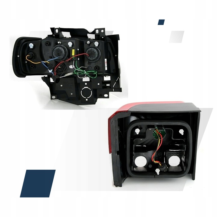 - Lampy tylne: diodowe LED Red Smoke, pasujące na oryginalny wkład VW T4 (1990–2003)